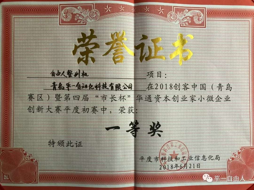 該產(chǎn)品在3C行業(yè)得到廣泛推廣,顛覆了行業(yè)傳統(tǒng)振動盤的應(yīng)用壁壘,并且?guī)椭居镁W(wǎng)絡(luò)營銷的經(jīng)營模式使整列機(jī)進(jìn)入了蘋果和華為手機(jī)工廠,這個僅有十幾人的小微企業(yè)研發(fā)的產(chǎn)品進(jìn)入蘋果工廠這不僅是全公司的喜悅也是平度的驕傲。公司在青島市長杯工業(yè)創(chuàng)新大賽中《微小零件整列項(xiàng)目》榮獲平度賽區(qū)一等獎。