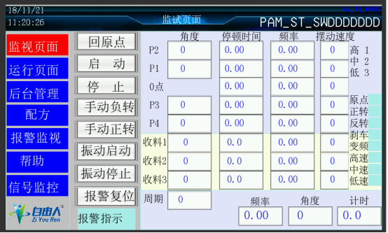 控制核心從單片機(jī)升級為PLC后,監(jiān)控,操作部分同時也升級為觸摸屏。同時對早期的單一配方增加到10套配方,配方存儲在觸摸屏中。不同的產(chǎn)品在整列時的數(shù)據(jù)不一樣,當(dāng)所整列的產(chǎn)品更換時,操作人員只需一鍵調(diào)用相應(yīng)的配方即可立刻投入運(yùn)行,無需再重新調(diào)整參數(shù)。