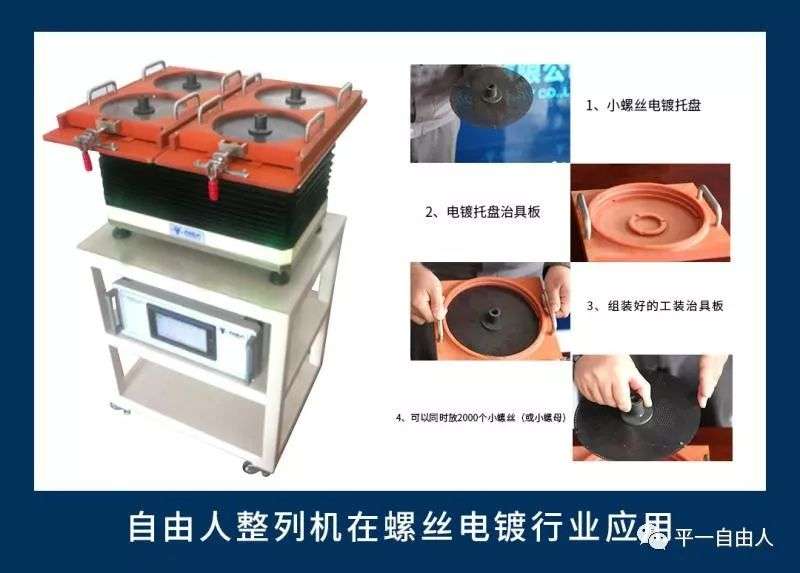 其次,小螺絲排列真空鍍膜適合使用青島平一自動化自由人品牌自動排列機。