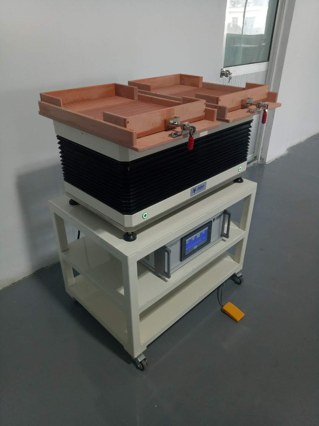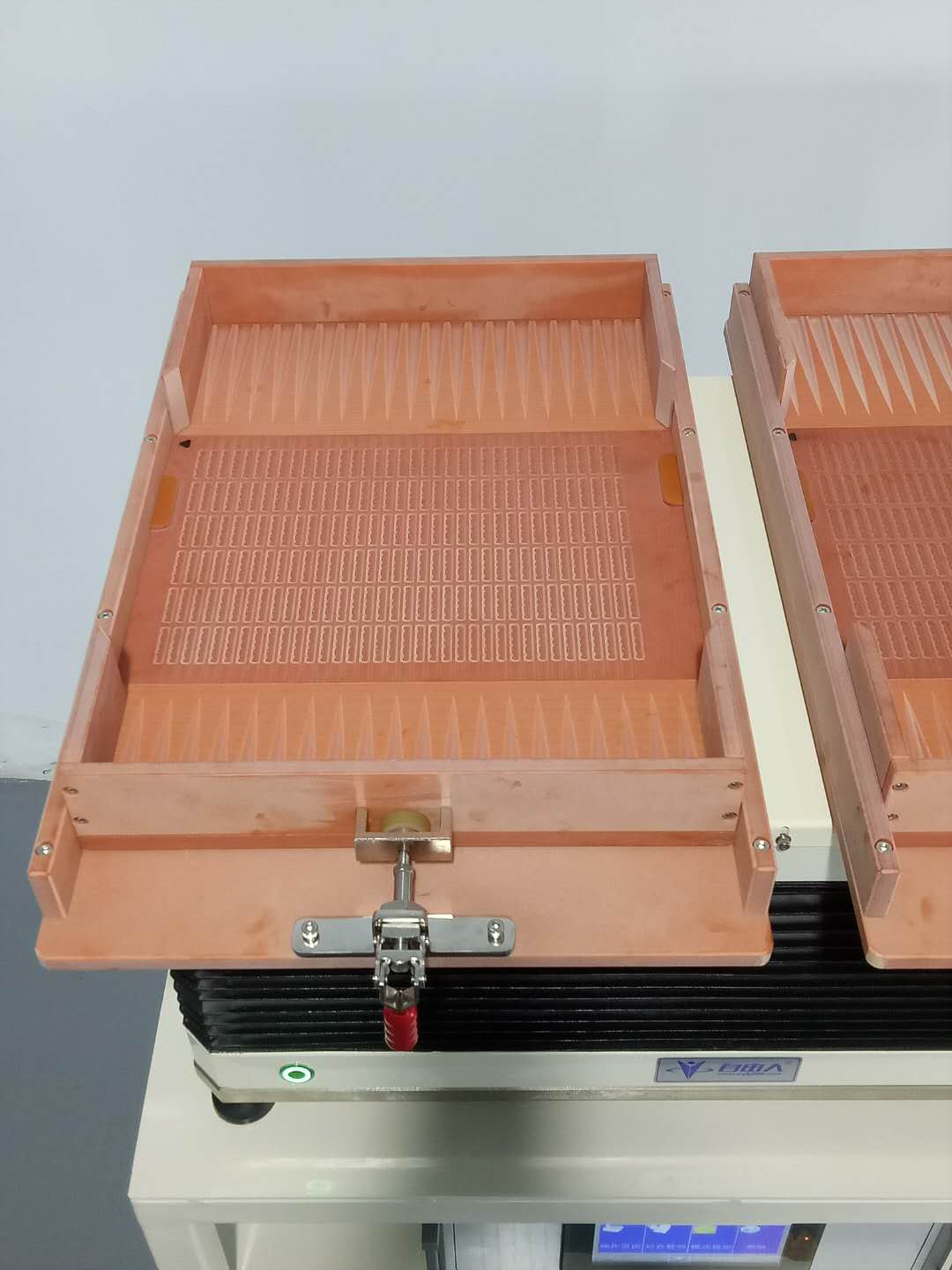 將要排列的手機(jī)屏幕排線固定蓋板倒入治具板中,通過振列機(jī)控制器設(shè)置好手機(jī)零件整列參數(shù),開啟電源,主機(jī)前后擺動(dòng)以及左右振動(dòng),將手機(jī)排線固定蓋板按照預(yù)定的方式和位置快速的排列整列好。完成后的整列可以配合組立、分揀、印刷、充磁、包裝等自動(dòng)化作業(yè),大大提高生產(chǎn)效率,是電子生產(chǎn)、注塑加工、精密組件行業(yè)必備的生產(chǎn)設(shè)備。