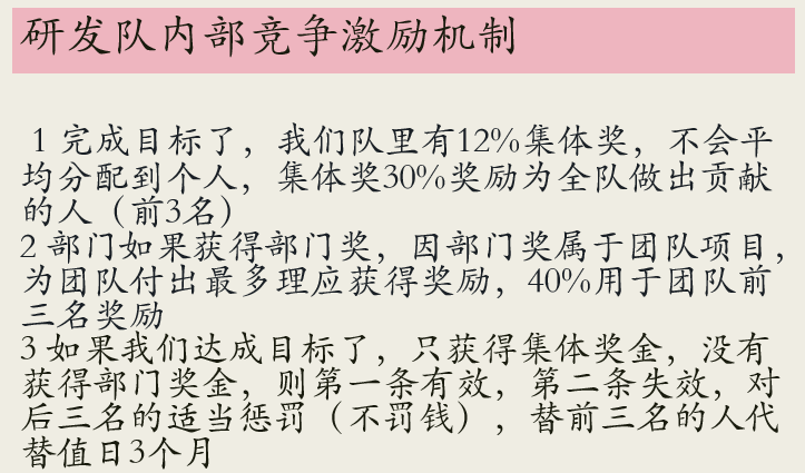 為了保證團隊目標達成和公司總目標的達成,團隊內(nèi)部也制定相應的機制,使大家都有目標感,各盡所能超同一個目標前進