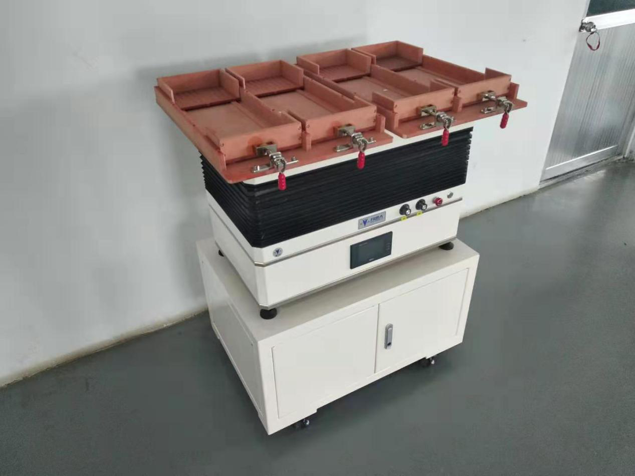 這是一臺(tái)標(biāo)準(zhǔn)型PAM-III-STW水平對(duì)向式雙頭雙槽整列機(jī),這臺(tái)整列機(jī)主要通過(guò)主機(jī)的前后翻轉(zhuǎn)及左右快速振動(dòng),小零件按照預(yù)定的方向和位置就振列到治具板的孔位中了,將小零件快速排列好。一臺(tái)整列機(jī)同時(shí)可以整列2塊治具板,效率是人工的3倍!